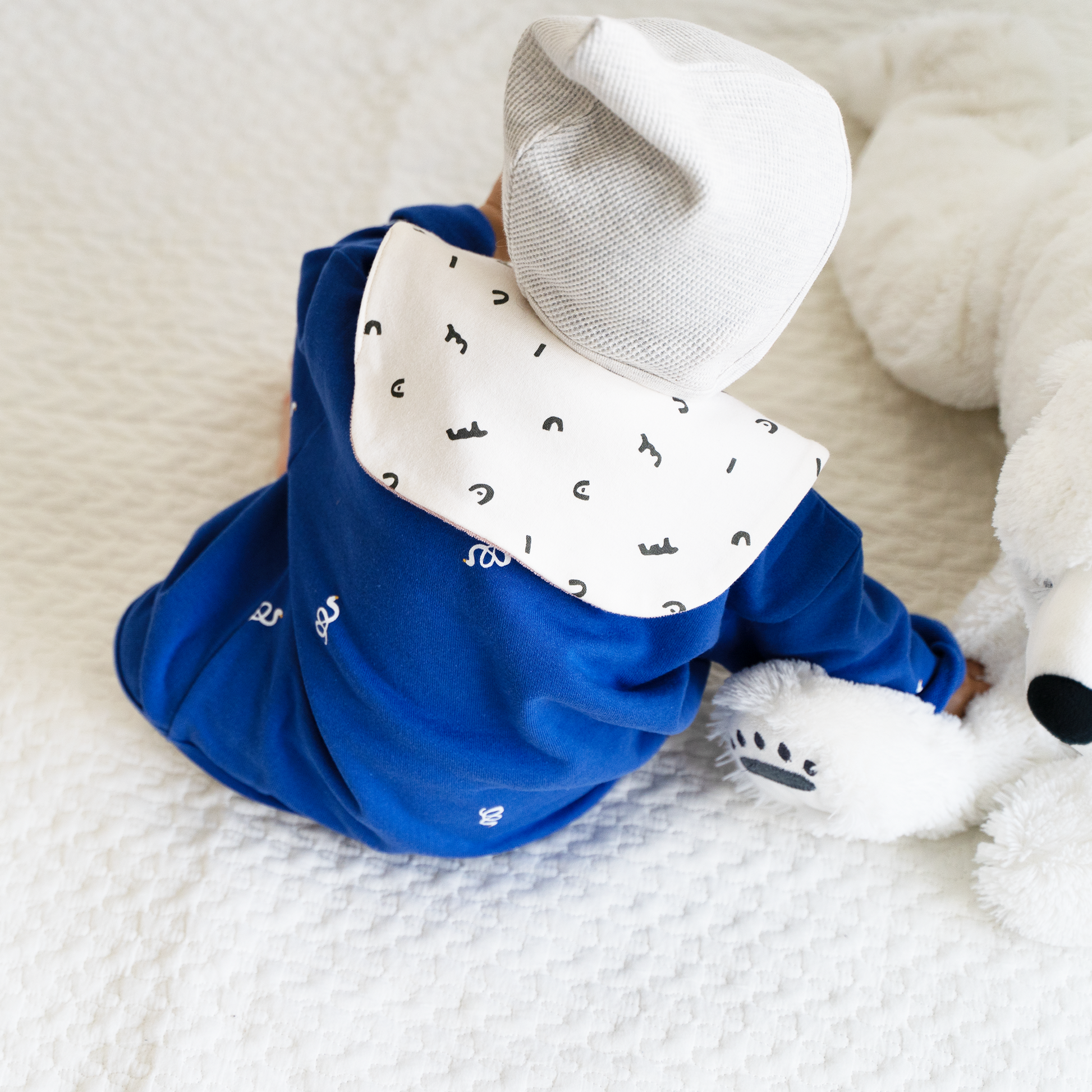 パイル面・プリント面のリバーシブルでの着用だけでなく、前後でも違った印象で着用できる4wayデザイン。