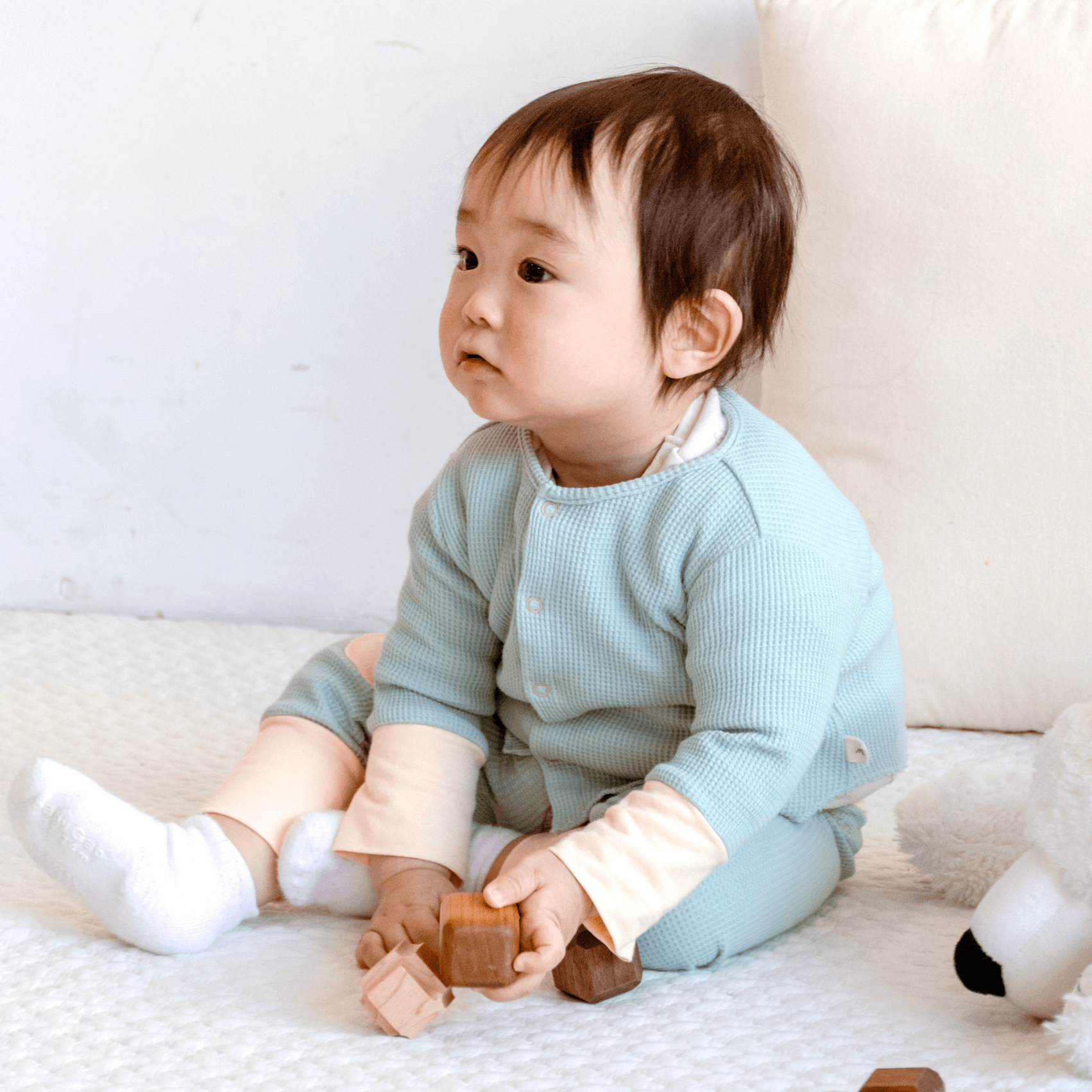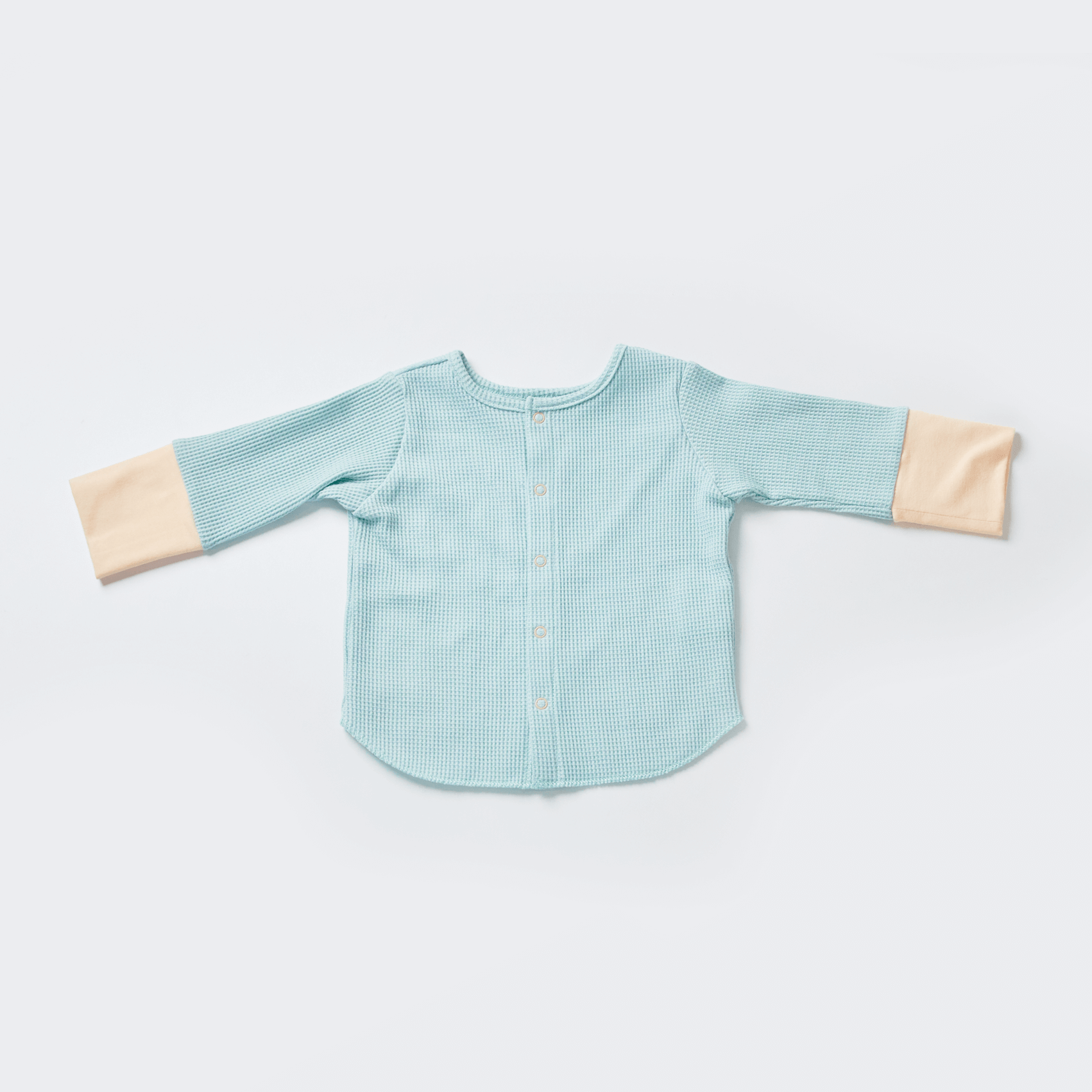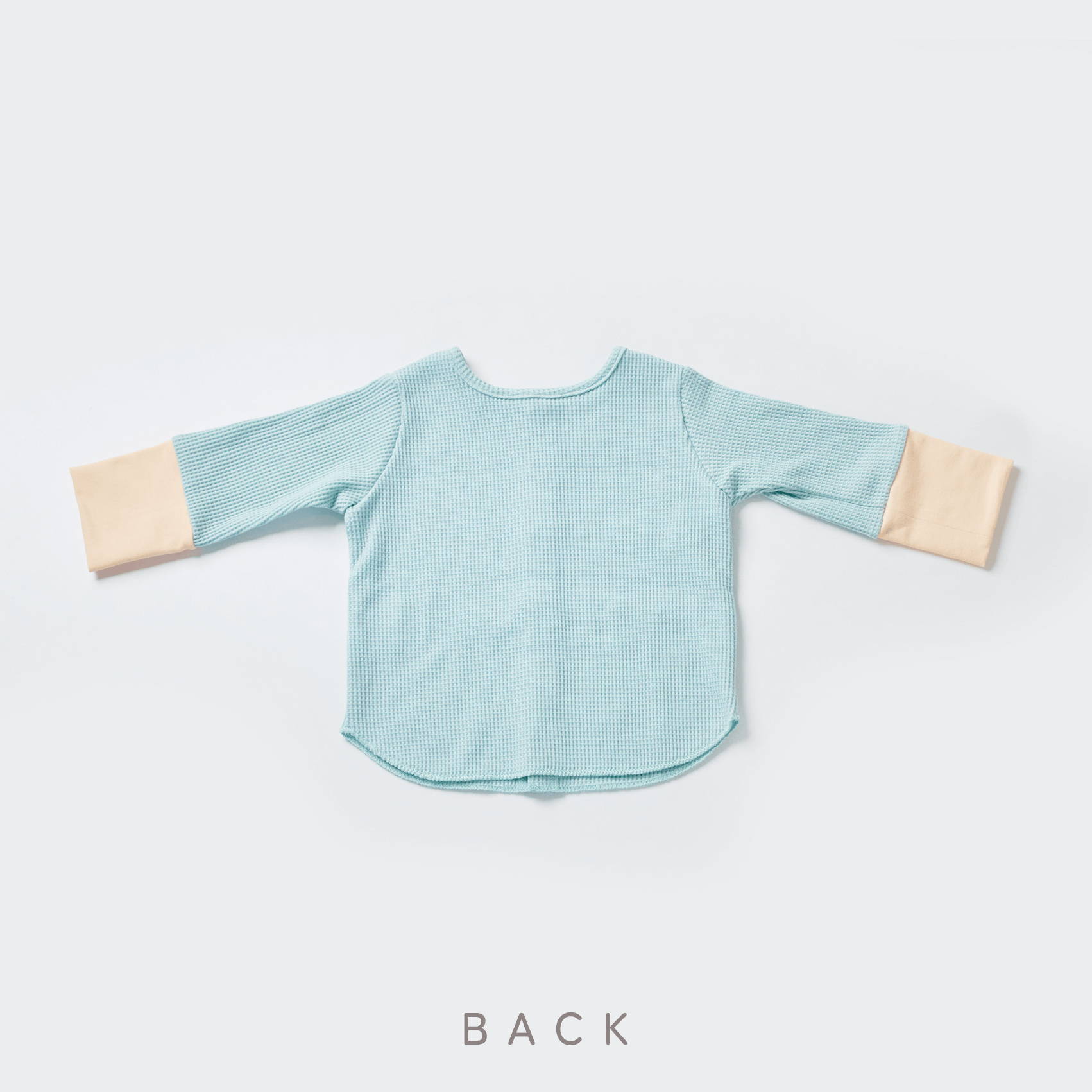 凹凸のある生地が雰囲気のあるコットンワッフルを使用。伸縮性があり柔らかく、動きやすさも肌触りも抜群です。