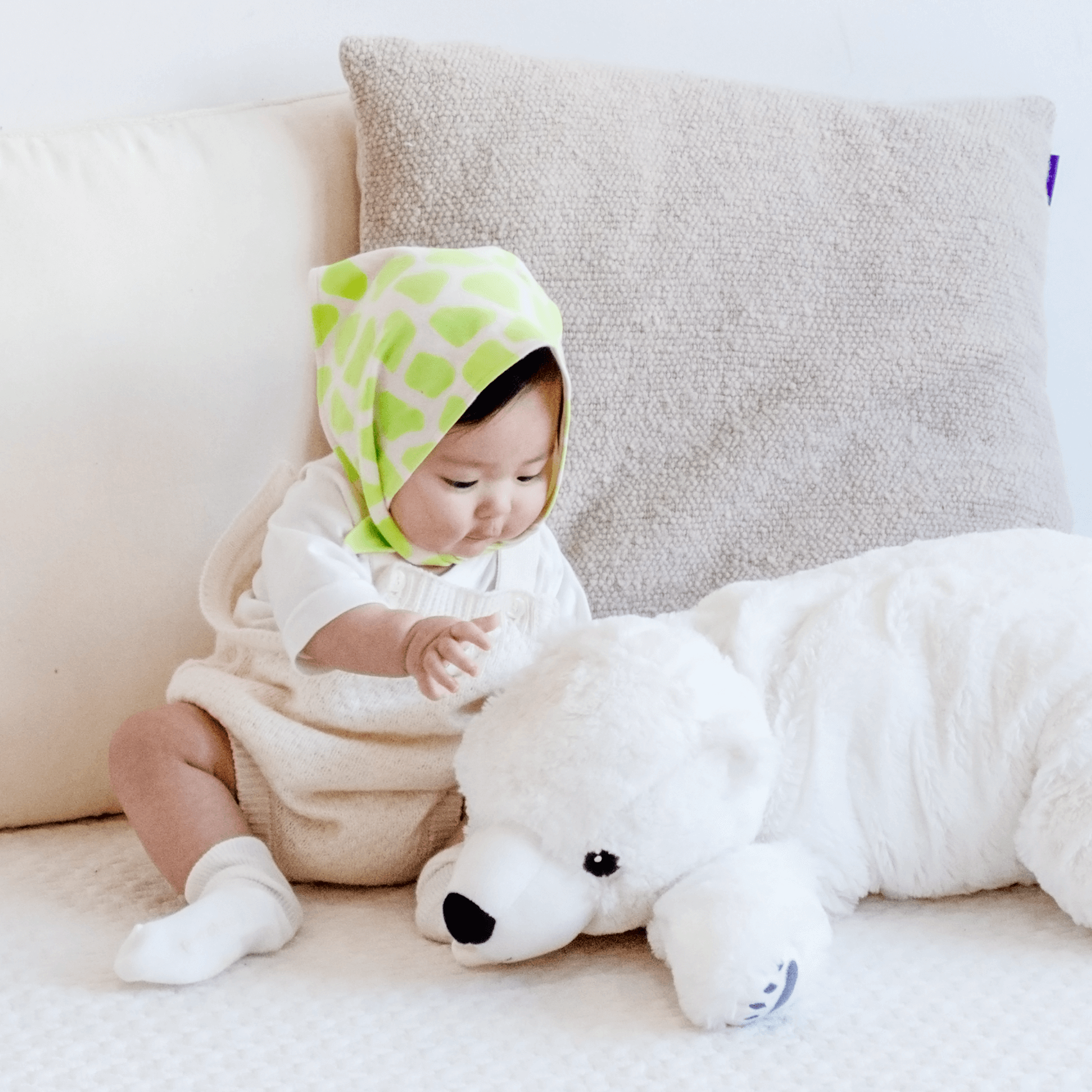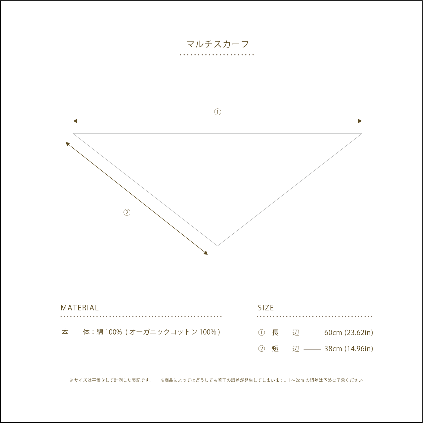 色々な使い方で楽しめるマルチスカーフ。スタイとしてはもちろん、バンダナ風に巻いたり、頭に巻いてバブーシュカとしてファッションのポイントに。また、バッグに結んだりシュシュとして髪に結んだりと、ママとお子さんでリンクコーデもお楽しみいただけます。