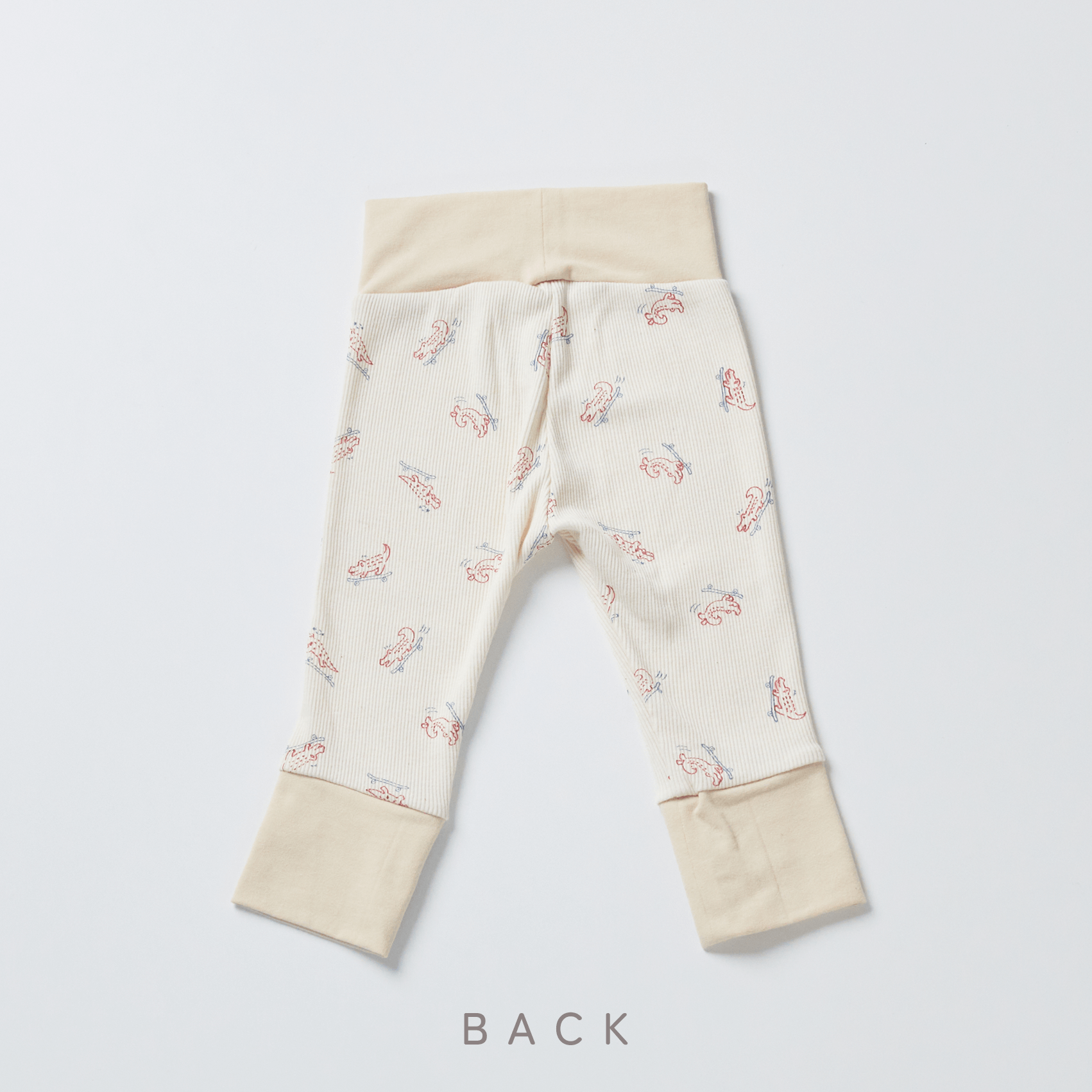 スケボーに乗ったワニさんのかわいい表情に注目!サイズ調整可能なリブレギンス
