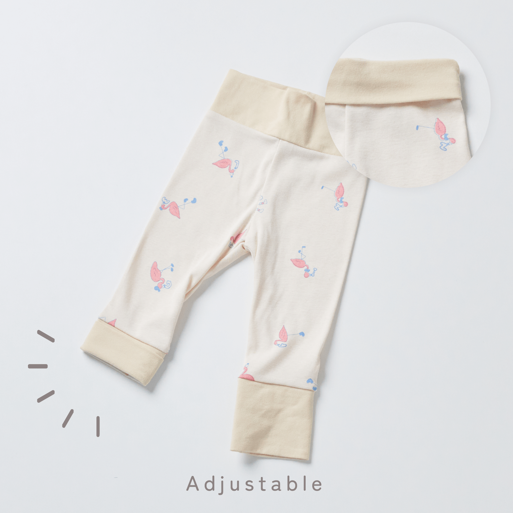 アルファベットを加えた可愛いフラミンゴ柄のサイズ調整可能なコットンレギンス