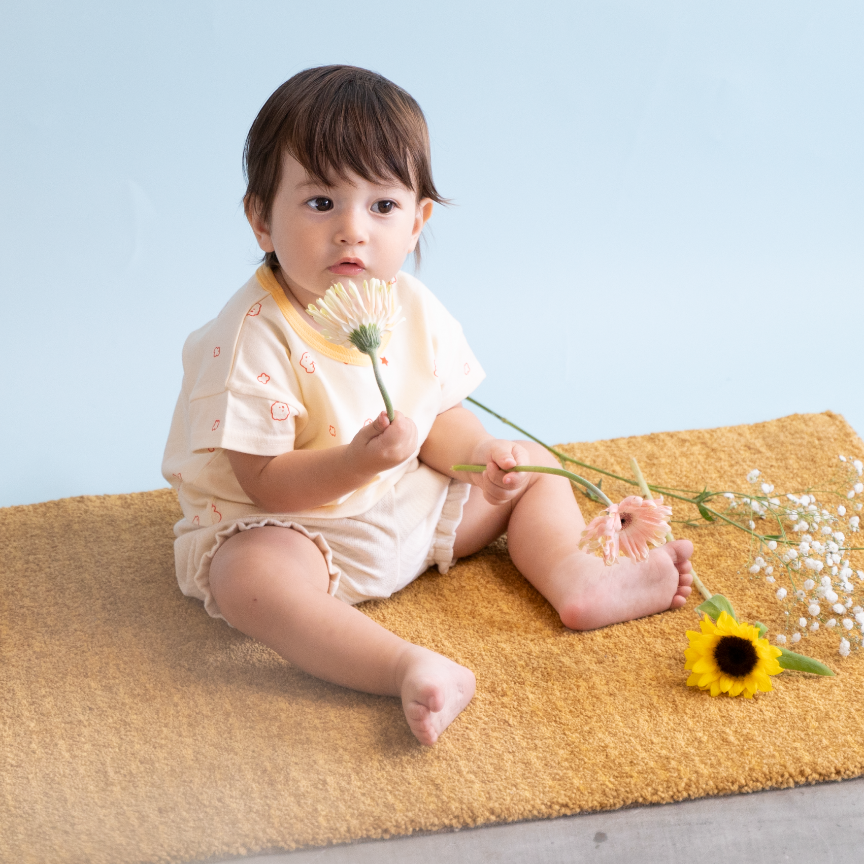程よい伸縮性で着脱しやすく、通気性・吸収性に優れた夏にぴったりの1枚。 ドロップショルダーと少しオーバーシルエットなデザインが1枚でおしゃれ感をアップしてくれます。